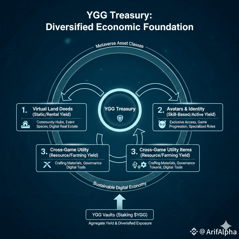 1. Virtual Land Deeds: These aren't decorative plots; they are revenue-generating properties. Think of an auction house location in a major metaverse, a digital oil field, or a location for virtual events. Real-Life Scenario: YGG's investment in virtual land parcels within major metaverse projects allows them to build community hubs, host events, and even rent out space for digital businesses—generating passive, foundational yield that isn't tied to the volatile tokenomics of any single game.