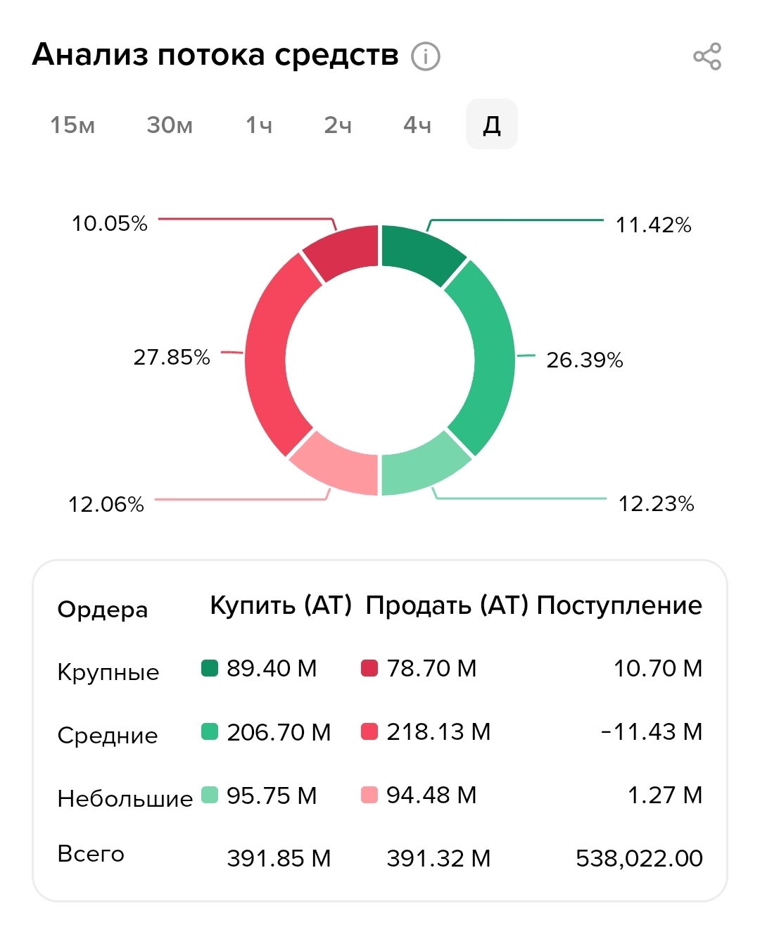 I look at the MA(5) volume - 20 million, MA(10) - almost 16 million. The current volume is about 10 million, significantly lower than the average values. After yesterday's spike in activity, there has been a lull, which is normal - the market is digesting information, positions are being redistributed. Usually after such periods of low activity, a new movement follows; the only question is where it will go.