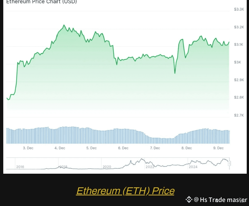 The coin has been moving within a tight consolidation — often between $3,000 and ~$3,200, forming triangular or channel-type patterns.