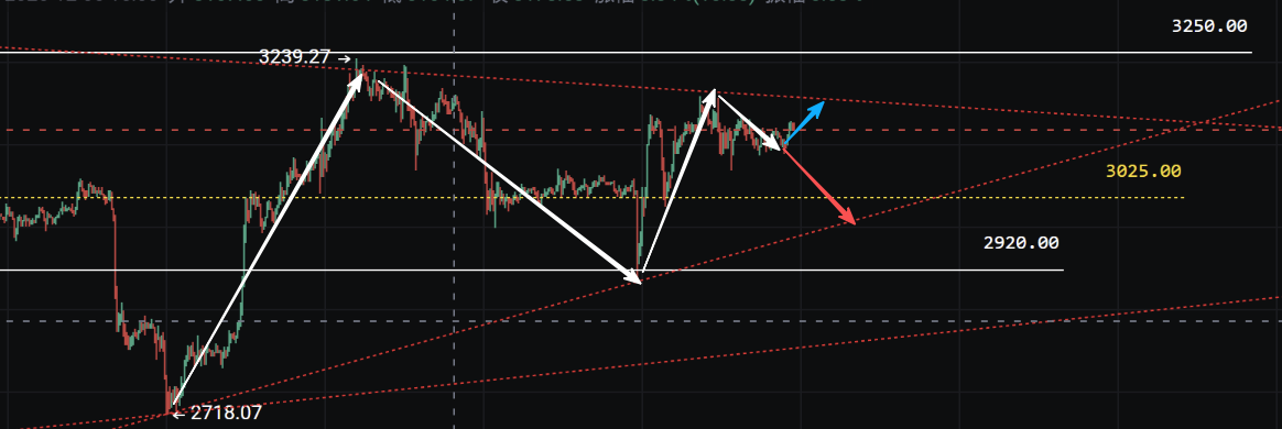 3250 is still a huge pressure point in the short term, but the market is too weak. If it gets close to 3175, you can enter a small short position, and add to your position near 3250. For long positions, it’s best to enter around 2980, if you want to go long, it's better to set a stop loss. Both long and short positions should have a stop loss of about 20 points. If the market is going to break through, just give it 20 points, anything more is wasteful.