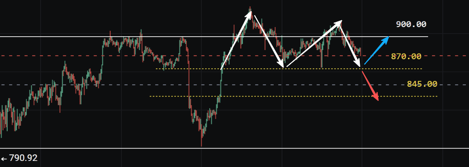 If the market continues to be weak, it is highly likely that this rebound in the drop is over, with no higher highs, only fluctuations between 800-900.