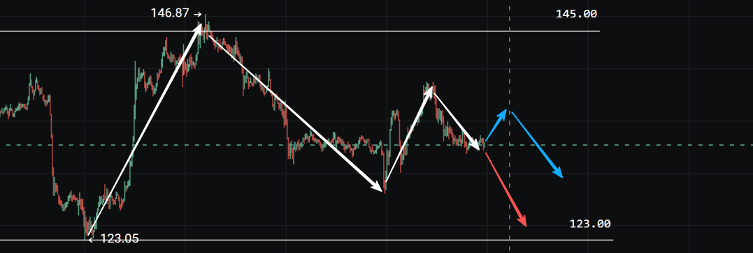 When I posted yesterday, I mentioned to quickly exit the SOL long position and add a short position. At that time, the position was around 138.2, and the take profit position for the short was around 132. The market's lowest was 131.64, perfect exit.
