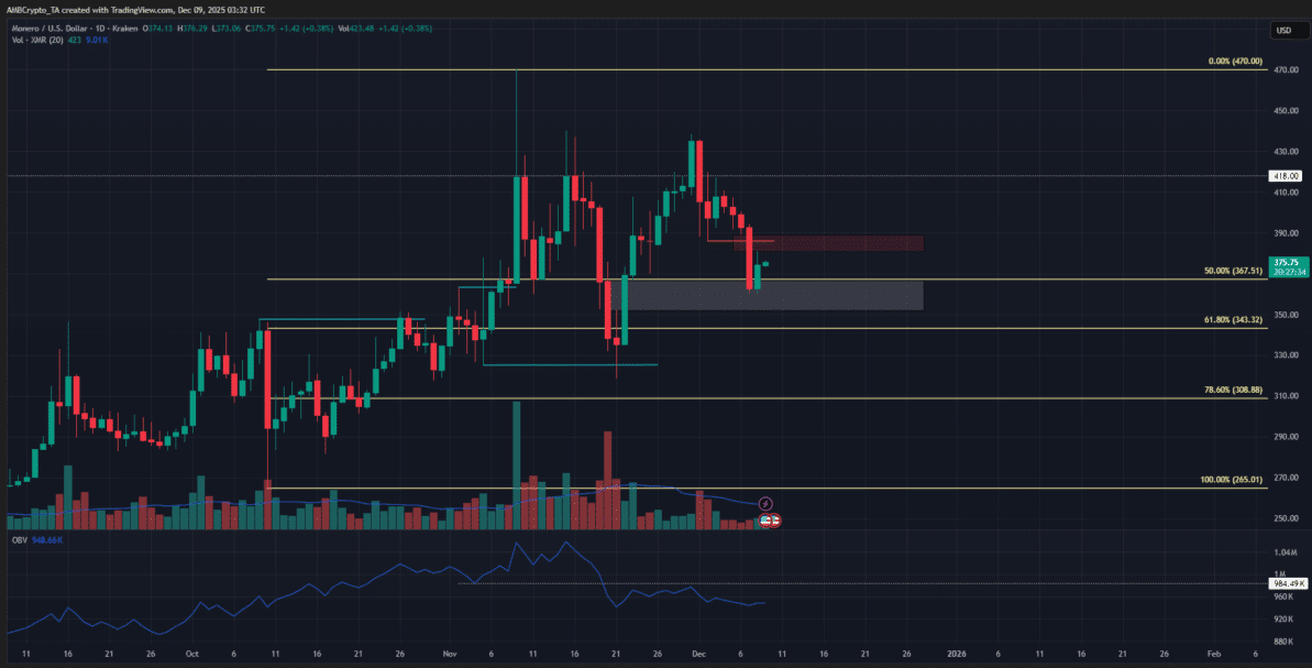 • If demand weakens, XMR may be forced to return below 360