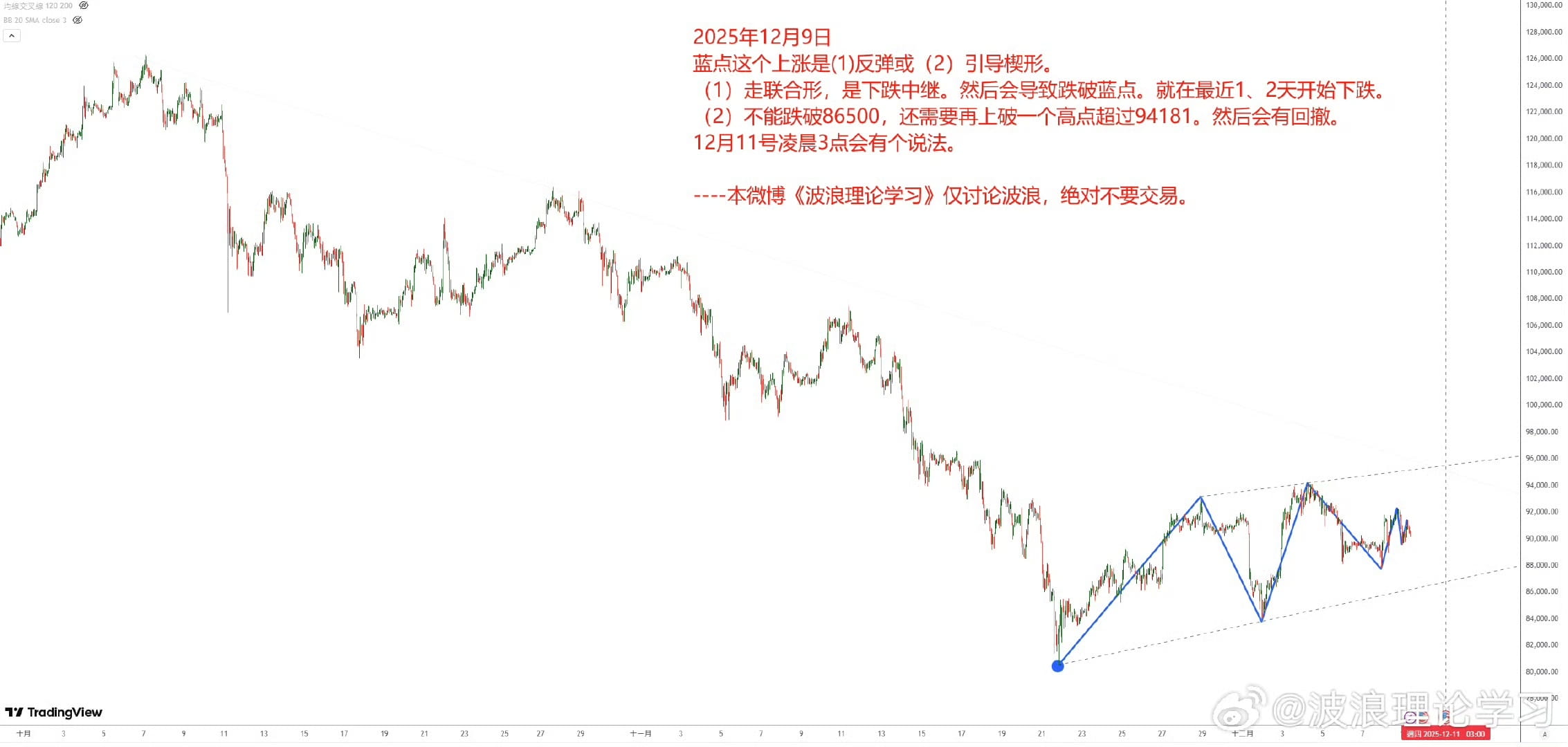 (2) It cannot fall below 86500; it needs to break above a high point over 94181. Then there will be a pullback.