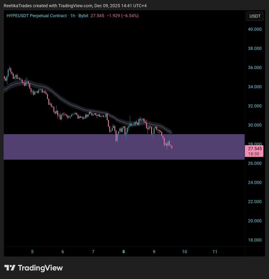 (Reetika believes HYPE may see short-term strength and can try to go long, but around 20 is a more prudent long position. Fartcoin will likely dip in the next few days.)