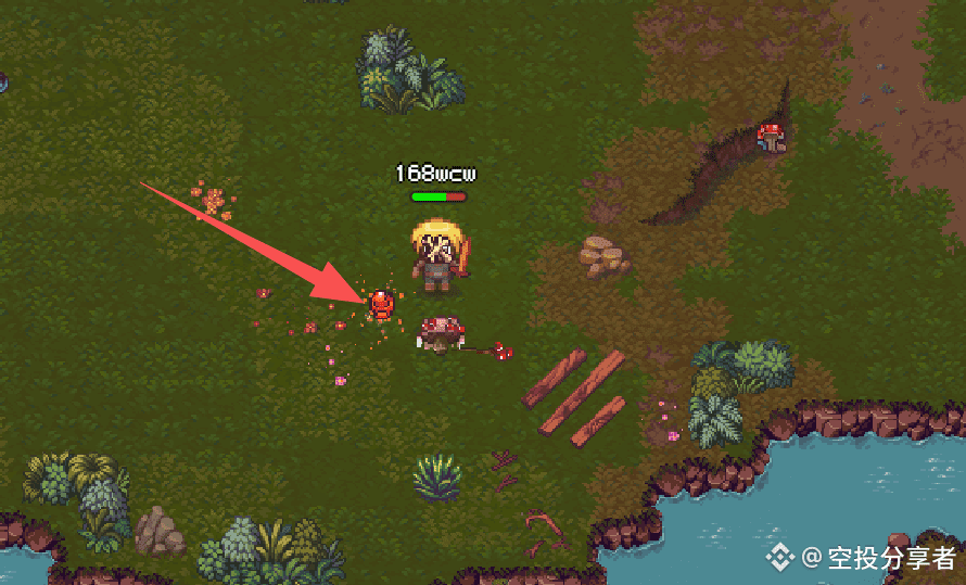 然后一直往下走出城,过桥找蘑菇打能掉面具,看运气运气好一只就掉了,捡起来就走,不要打牛和野猪不掉面具浪费时间!过这个桥就行,记得把鱼拖出来没血的时候吃!