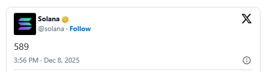 $XRP The recent post from Solana $SOL featuring only the number “589” has caught the attention of individuals in the crypto space. The post did not explain, however, the significance behind the number is widely recognized in XRP circles.