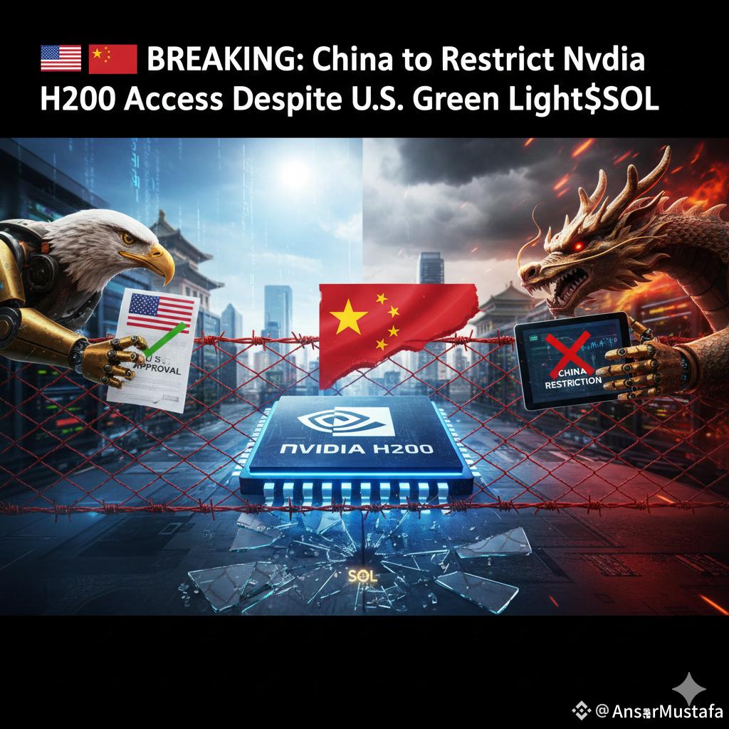 🇨🇳🇺🇸BEIJING/WASHINGTON D.C. – In a move that underscores the persistent and deepening technological rivalry between the United States and China, sources indicate that Beijing plans to impose restrictions on access to Nvidia's cutting-edge H200 AI chips, even after the U.S. government signaled a green light for their export. This unexpected development highlights China's strategic ambitions to foster indigenous AI capabilities and reduce reliance on foreign technology, despite the potential short-term impact on its burgeoning AI sector. $SOL