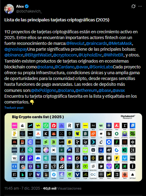In 2025, at least 112 cryptocurrency cards will compete in the market, intensifying the battle for capturing users' daily spending. This is revealed by researcher Alex Obchakevich in his comprehensive list of active projects worldwide.