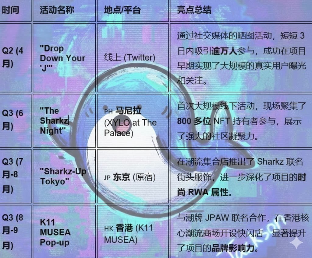 Jackson Sharkz NFT showcases strong operations and a focus on offline activities, particularly performing actively in the Asian market. Its value growth mainly comes from: