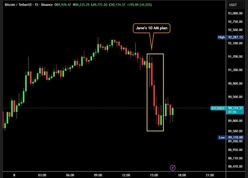 ▫️The second picture - 15-minute BTC/USDT chart: exactly at 10:00 NY time, there is a sharp drop in Bitcoin, wiping out 16 hours of growth in 20 minutes. This happens almost every day since November. Clean, fast, by the template. Perfect high-frequency execution fingerprint.