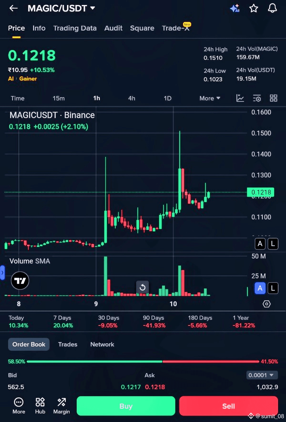โด๏ธ The $MAGIC chart shows the big spike was likely liquidity sweep and the trend is stabilizing, not trending up strongly.