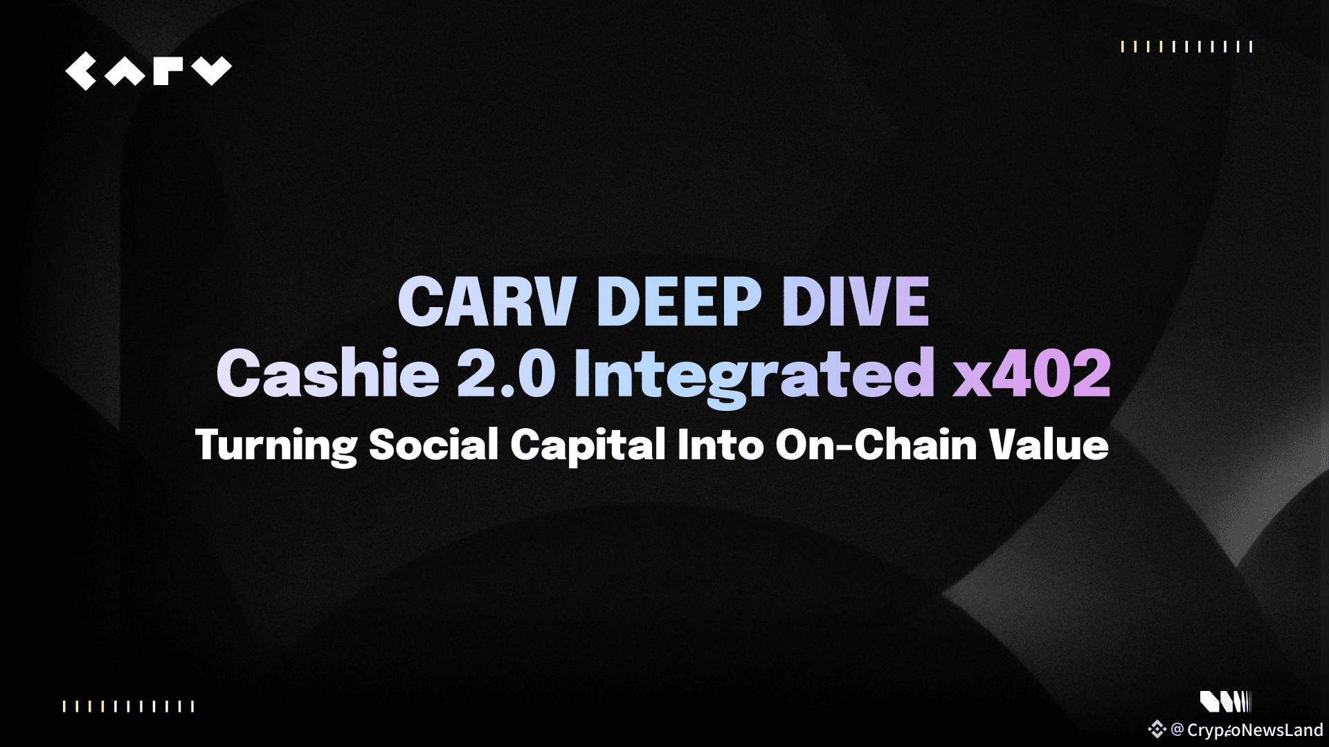 As part of CARV’s broader modular agentic infrastructure, alongside CARV ID (ERC-7231), Model Context Protocol (MCP), and the Shielded Mind update, Cashie's integration with x402 protocol transforms social engagement into verifiable, automated, and privacy-preserving on-chain rewards, pushing the boundaries and limits of the creator economy, turning social capital into on-chain value.