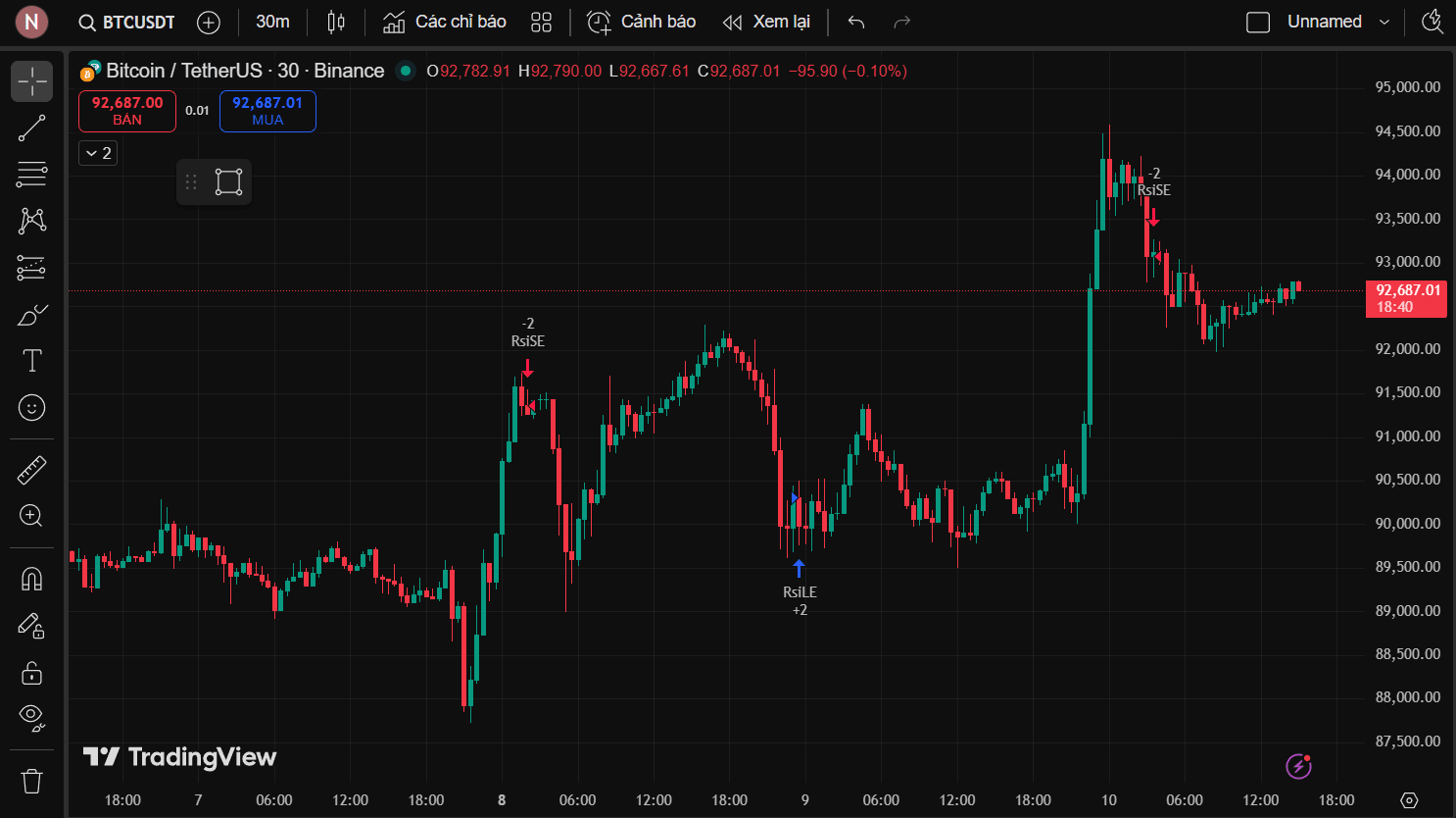 The volume does not increase but the price does not decrease sharply is characteristic of smart money accumulating quietly. The 30m chart is forming a slowly rising bottom candle series, indicating that the cash flow does not want anyone to enter a good position anymore. If BTC closes above 93400, the chance of soaring to the 95200 area will be extremely high.