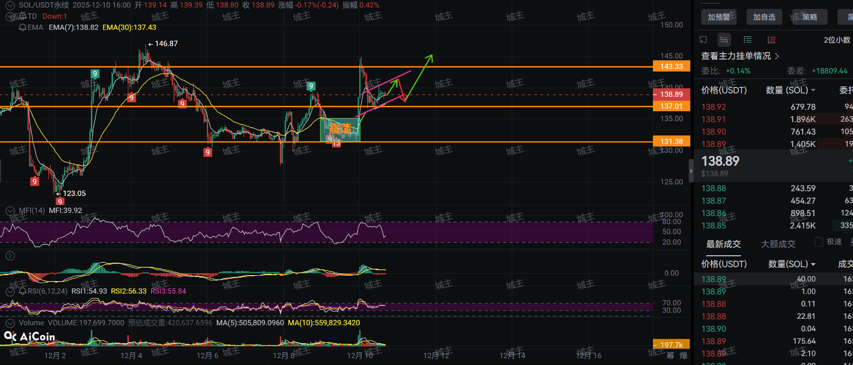 Recently, SOL has been like taking a 'range elevator', stuck in the box between $131-134, repeatedly jumping around. Today the price hovered around $137-138 all day, and many players are anxiously slapping their thighs: 'Is it going up or down?' Don't worry, let's first look at the technicals—support at $131.38 is like the 'floor', and if it drops here, it might bounce back; resistance at $143.33 is the 'ceiling', and if it breaks through, it might face a pullback. The current price is $138, just stuck in the middle, like standing at a crossroads, deciding which way to go based on the 'wind direction'.
