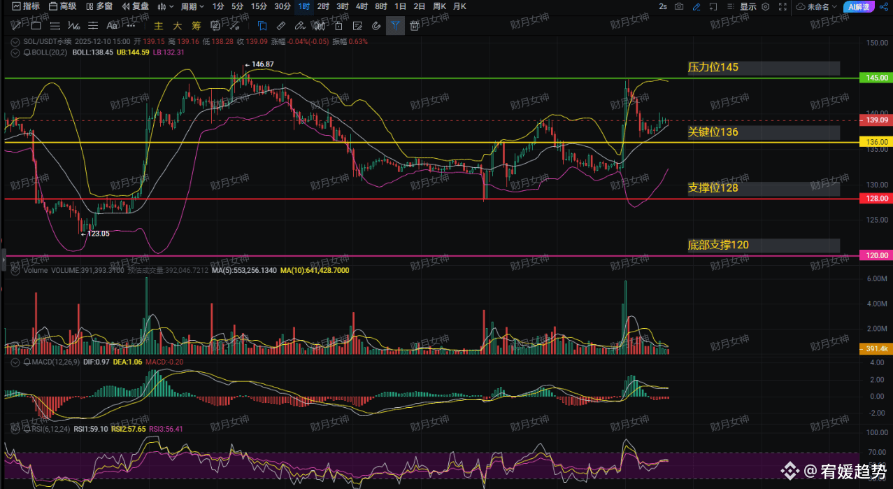 个人观点:结合资金异动和技术走势,当前市场正处于消息面与技术面的共振阶段。巨鲸大规模提币的动作,本质是长期看好 SOL 的信号,但短期走势仍取决于 136 美元的争夺结果。需要重点关注今晚美联储的利率决议以及鲍威尔的讲话,这才是影响短期走势的核心因素。