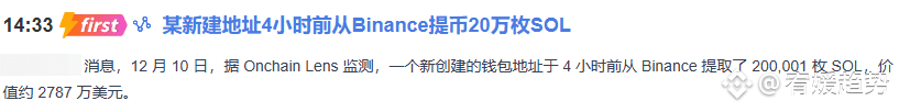 今早链上数据突发异动:一个全新钱包地址从币安一次性提走 200001 枚 SOL,按当前价格计算,这笔资金价值接近 2800 万美元,绝非小幅度资金流动。而当前 SOL 价格正卡在 136 美元关键位置,上下波动受阻。