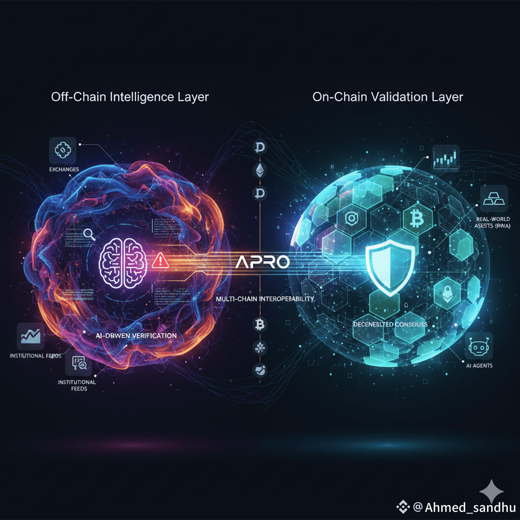 APRO is not just a simple data pipe; it's a sophisticated, dual-layered intelligence protocol designed to deliver high-integrity, real-world data to smart contracts across a growing number of blockchain networks.