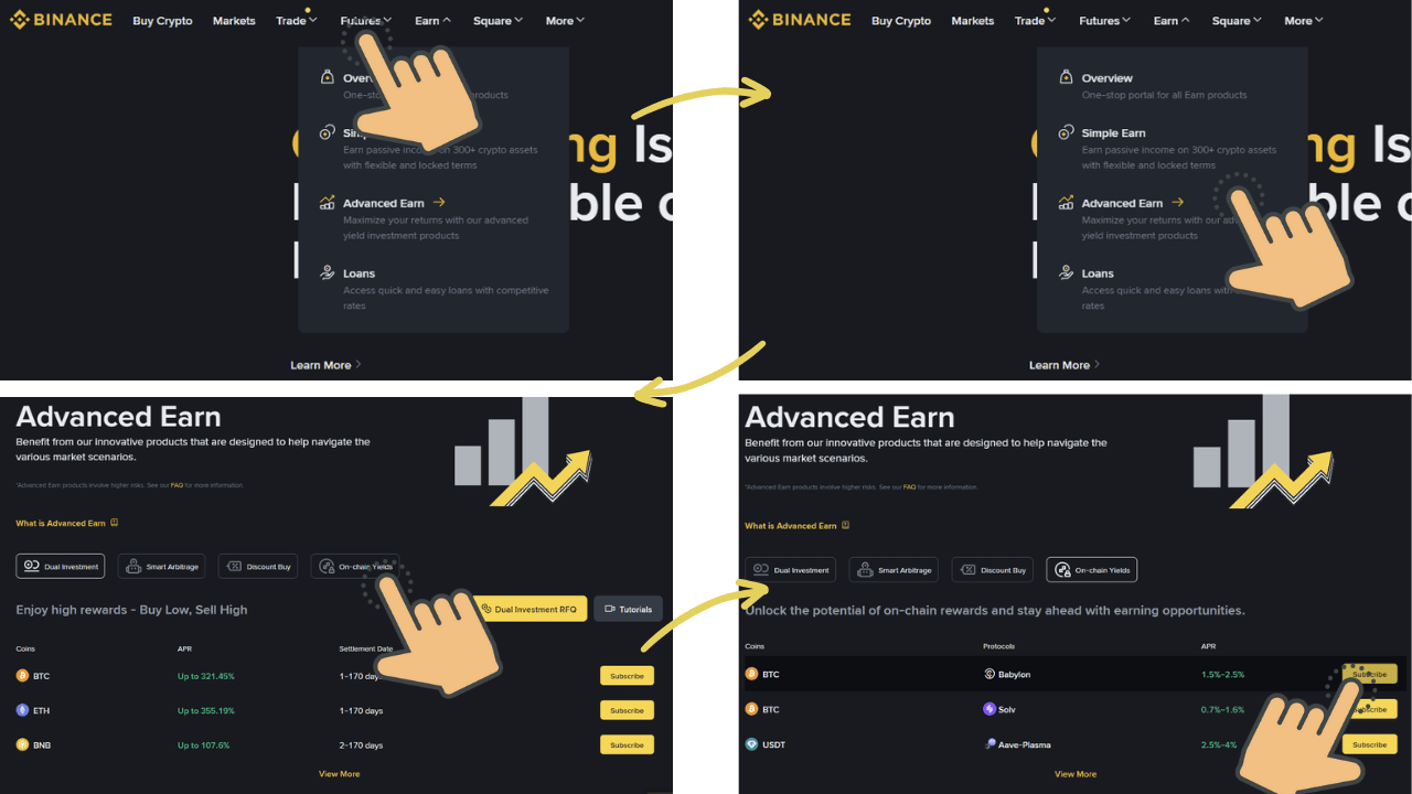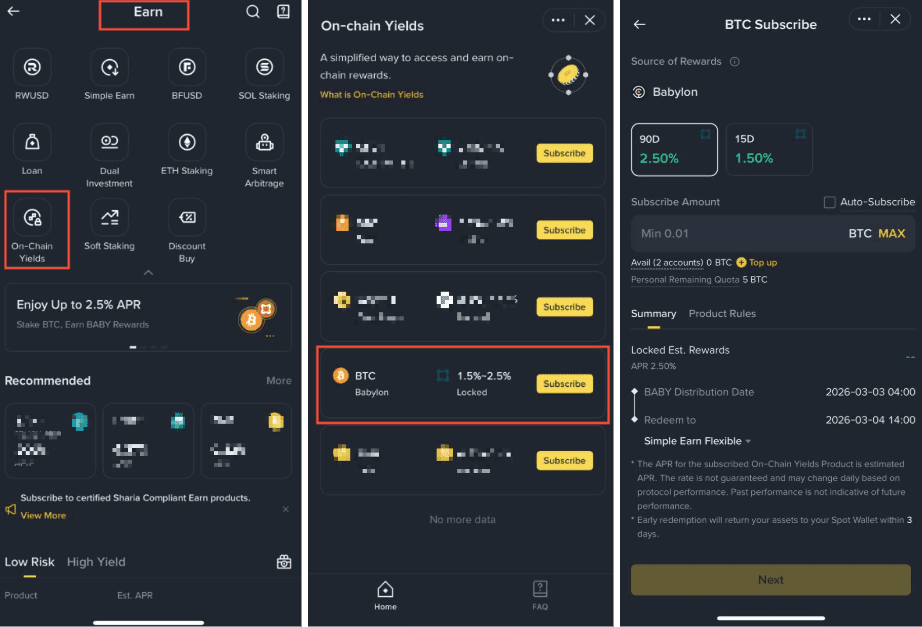Then Binance simplifies everything through a special feature called On-Chain Yields. We just need to click 'Subscribe', choose the amount of BTC & staking duration, then Binance takes care of the rest. We don’t need to fuss over private keys, no need to fiddle with smart contracts. Everything is automated through the platform. ⏱️