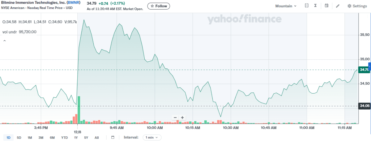 BMNR's stock maintained a daily trading volume of $1.8 billion, placing it 37th in terms of activity in the American market despite recent market fluctuations.