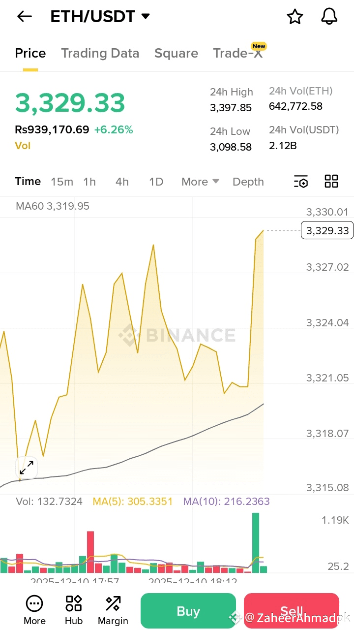 ETH/USDT · $3,329 (+6.26%) — Intraday Update