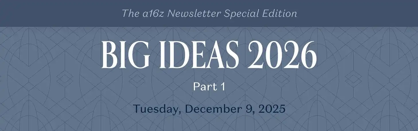 Just finished the a16z annual (Big Ideas 2026), and I was blown away! It turns out that next year's core of AI isn't just more powerful models, but a complete shift from 'tools' to 'systems' — becoming environments, becoming entities, and working in parallel with humans! The underlying logic dug up by the four major teams from infrastructure, growth, healthcare, and the interactive world is the password for making money/career choices next year, so hurry up and lock it in! 💨
