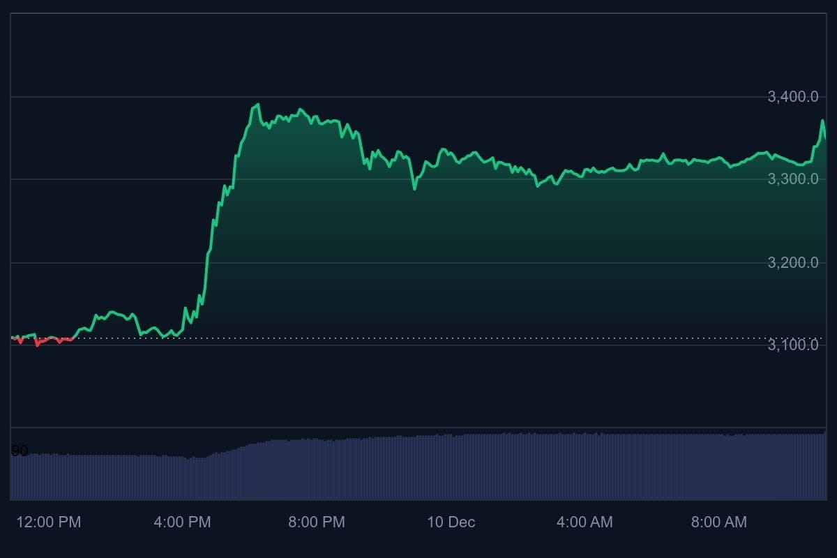 Amid this resurgence, Ethereum has reclaimed its long-lost $3,300 level, surging by over 7% over the last day. Notably, data from CoinMarketCap shows that Ethereum is trading at $3,321 as of press time.