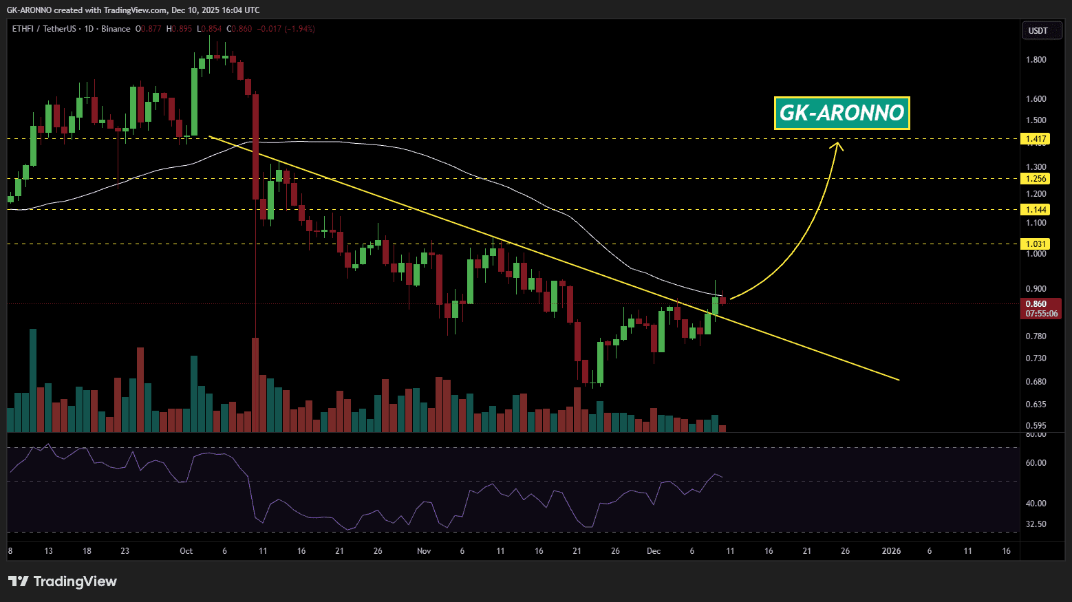 #ETHFI It has broken above the downward resistance on the daily chart and is currently facing SMA50. Watch it closely. If it breaks above SMA50, the potential targets are: