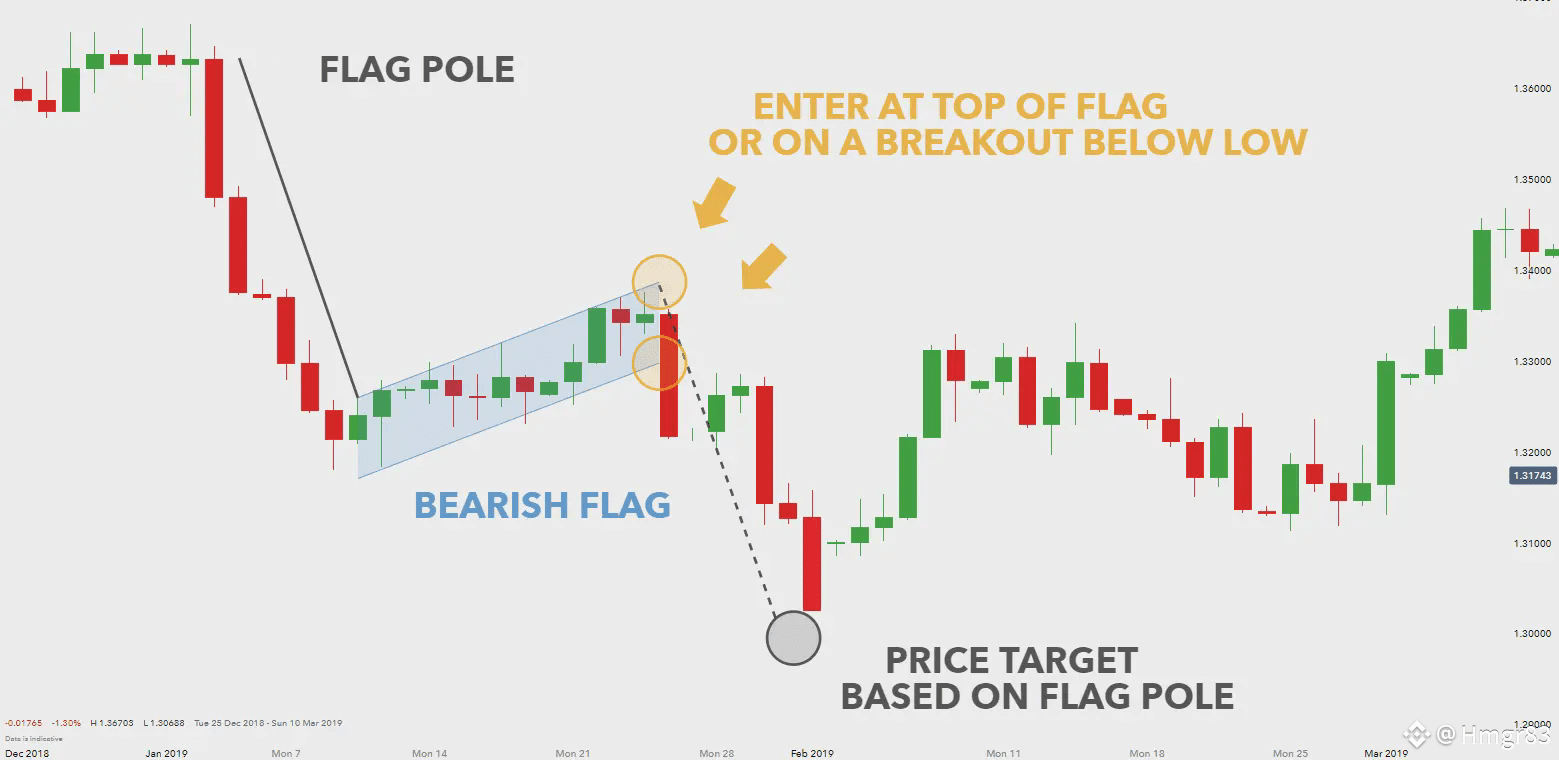 This pattern is effectively a pause in a downtrend. The price has gotten ahead of itself with a steep decline; therefore market activity takes a break before continuing the downtrend. This pause is reflected in the decreasing trading volume. Similarly, a spike in volume marks the resumption of the downtrend.#FedDovishNow $BTC