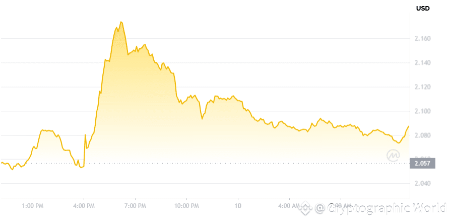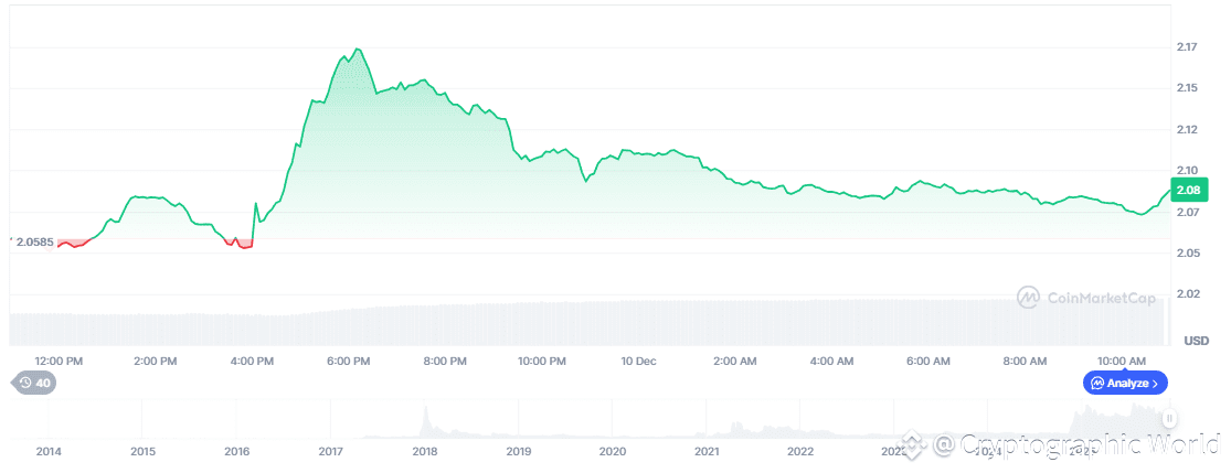This forecast represents a –1.73% dip from today’s rate and confirms that sellers are likely to remain dominant until the price can reclaim the $2.12–$2.17 zone.