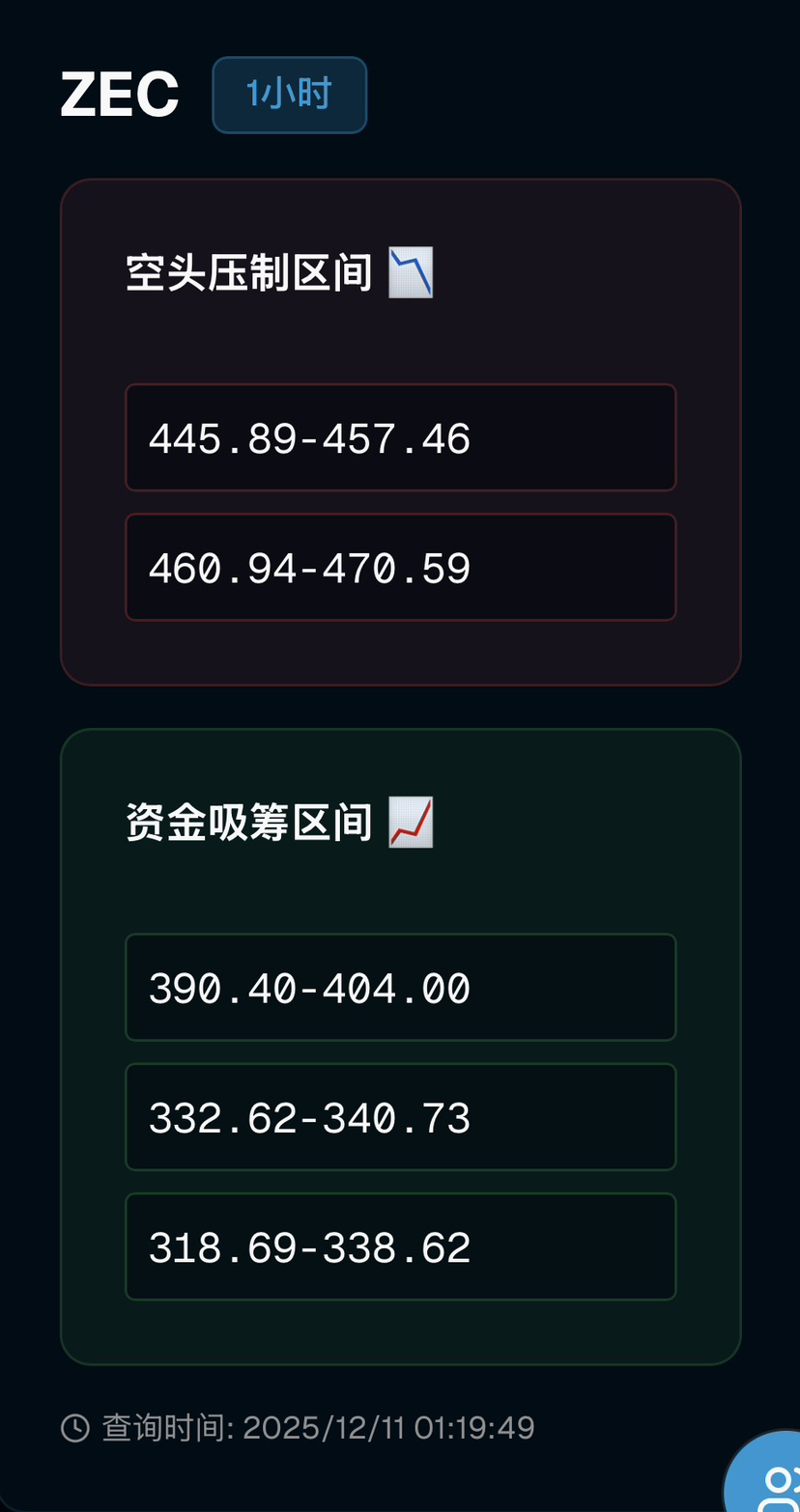 Overall, the current ZEC is in a fluctuating accumulation phase under a bullish trend, with the direction upward but the process inevitably being tedious. The best response strategy is to avoid contrarian shorts, not to impulsively chase up at high levels, but rather to lightly buy around the accumulation zone and plan to take profits systematically in the suppression zone, following the dealer's rhythm with discipline rather than being led by emotions. The above is my personal interpretation of the monitoring data, for reference only, and does not constitute any investment advice.