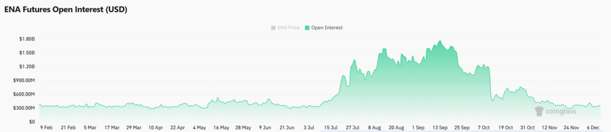 The open trading volume increased by 3.90% to reach 358.85 million, revealing a significant return of derivatives traders with ENA breaking the previous structure.