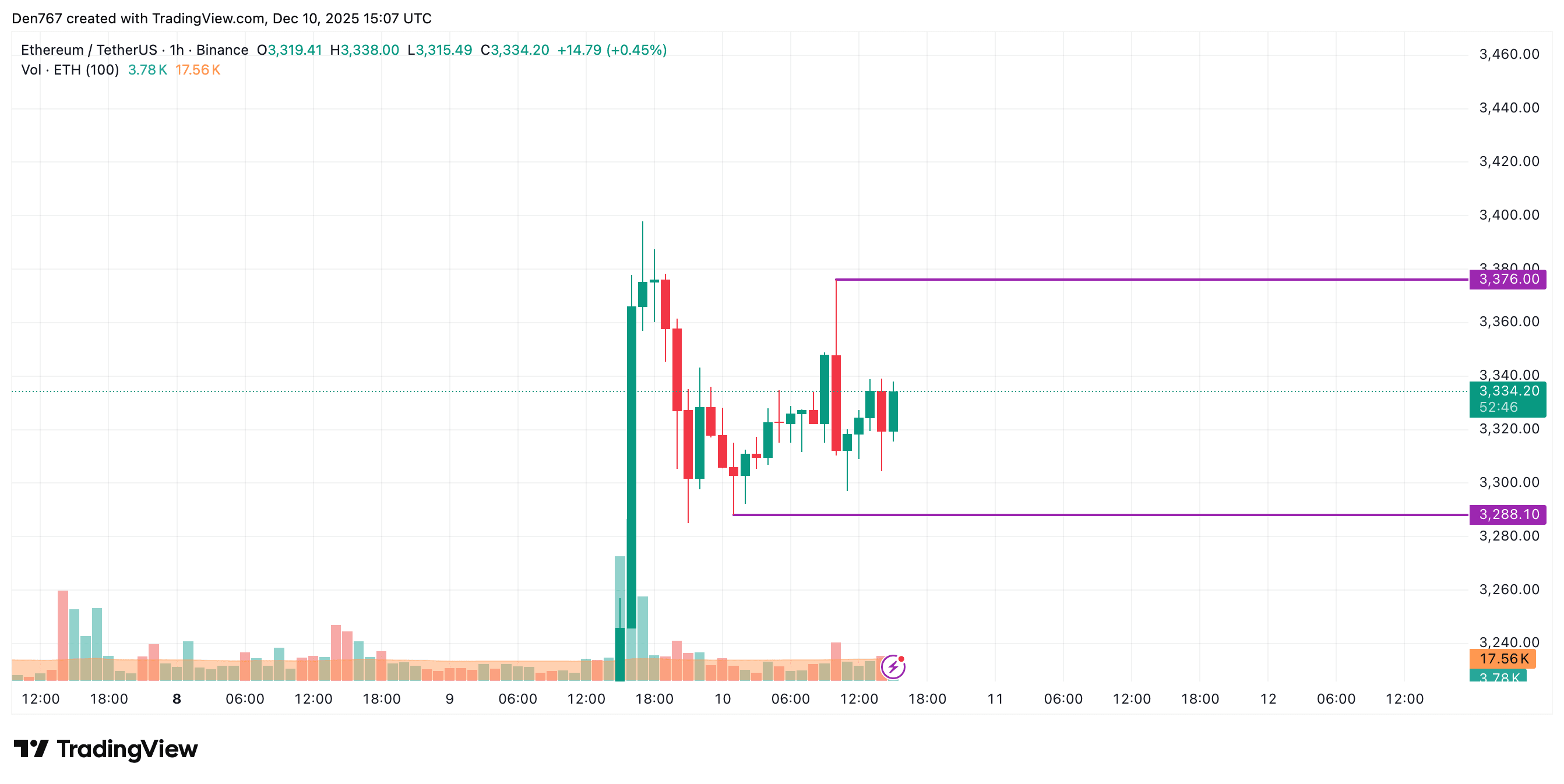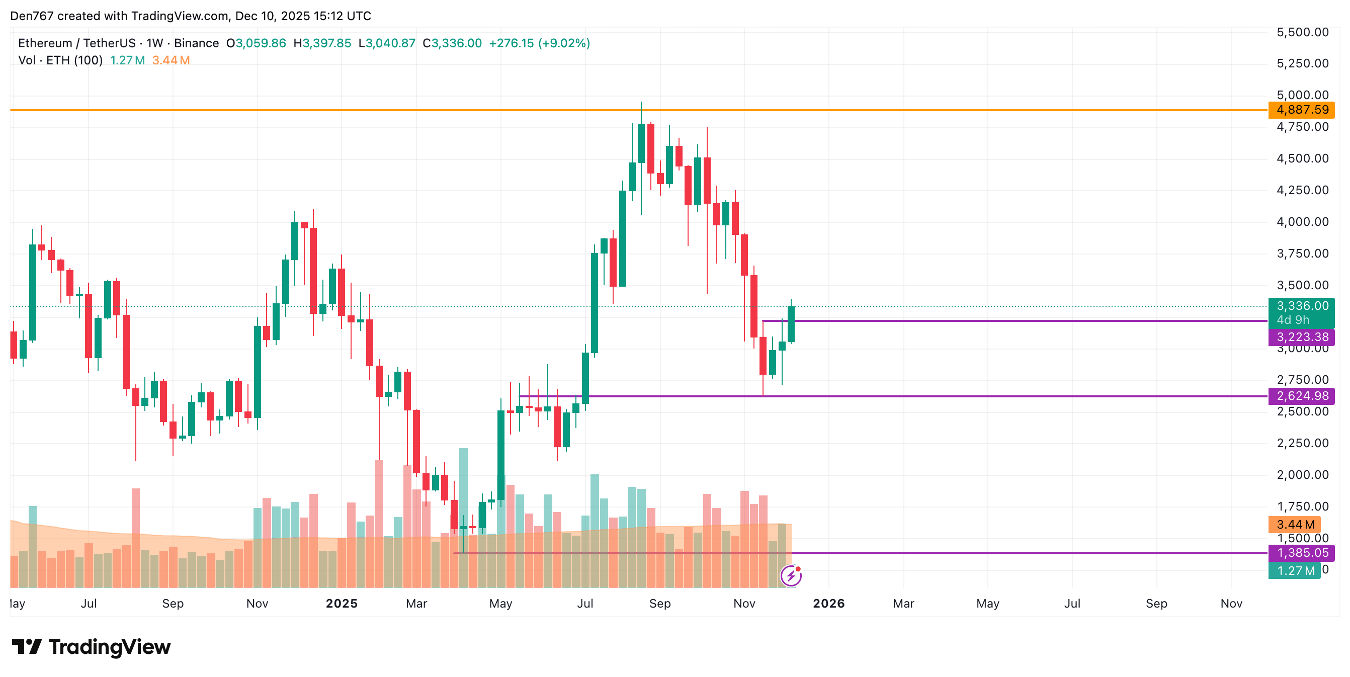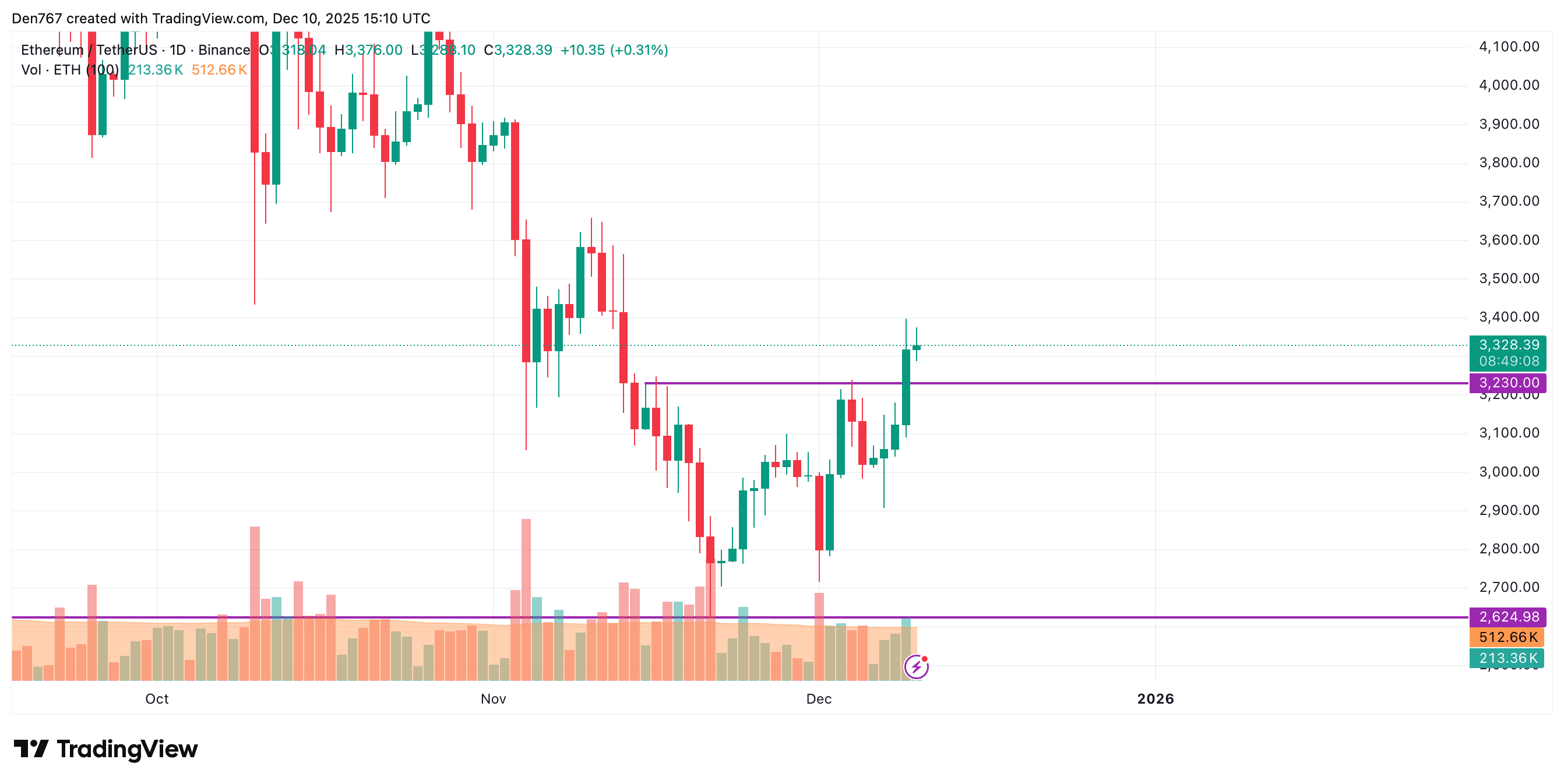 On the longer time frame, the price of the main altcoin is above the $3,230 level.