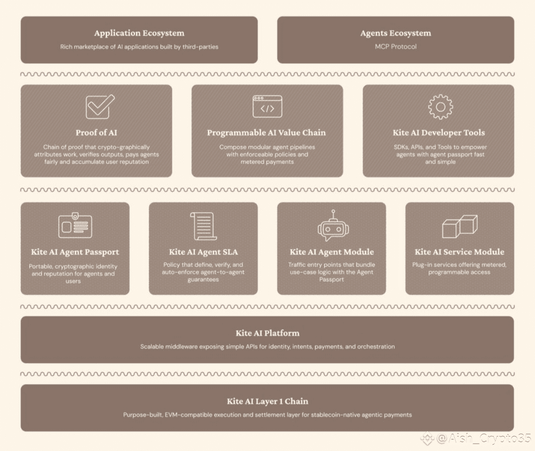 Trust is the Achilles' heel of multi-agent systems, but Kite's Programmable Trust Layer provides the answer through a suite of innovative primitives: Agent Passports, Proof of AI Consensus, SLAs (Service Level Agreements), the AI Value Chain, Agent Modules, and Service Modules. Agent Passports act as verifiable credentials, encoding an agent's reputation, capabilities, and audit trails on-chain—like digital diplomas that are cryptographically signed and revocable, presented before engaging services. Proof of AI Consensus leverages zero-knowledge proofs to validate collective decisions, such as a swarm of agents voting on a market prediction, without revealing sensitive data. SLAs enforce contractual guarantees, automating penalties or rewards based on performance metrics like accuracy or uptime. The AI Value Chain traces contributions across agent collaborations, ensuring fair attribution and micropayments for value added. Meanwhile, Agent and Service Modules are plug-and-play components: Agents use modules for behaviors like negotiation or learning, while Services offer standardized interfaces for tasks like data querying or computation. This layer enforces "mathematical safety," where trust isn't assumed but programmed—verifiable, auditable, and tamper-proof. It eliminates the guesswork, allowing agents to collaborate with confidence.