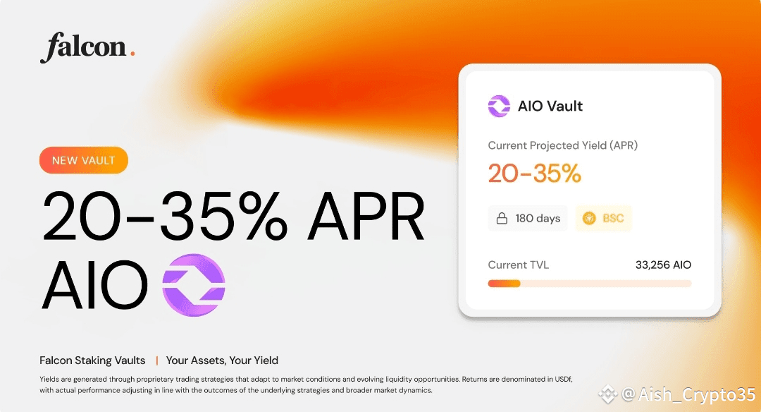 In the world of decentralized finance (DeFi), holding crypto tokens like AIO often means missing out on passive income. But Falcon Finance, a key player on BNB Chain with over $2 billion in USDf circulation, is changing that. Today, they've added $AIO—the token behind the AI trading platform OlaXBT—to their Staking Vaults. This lets AIO holders earn an estimated 20%–35% APR in USDf, paid weekly, while keeping full exposure to AIO's price upside.