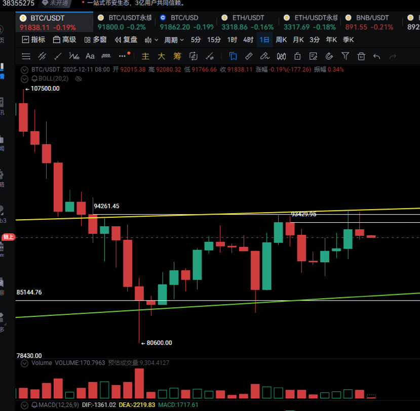 Aaron mentioned multiple times in August that 120,000 is the major peak of this cycle, urging people to escape the top (the pinned article can be checked). He also provided points for bottom fishing: 82550 (monthly support), 80000 (round number), 78430 (weekly support). Historical articles can all be checked; I have never deleted or modified any article. Including each time I find support and resistance levels, you can compare with your own system. Is it better to use moving averages, Bollinger Bands, MACD, KDJ, or is naked K better? Simplicity is the ultimate sophistication. In my opinion, besides MACD for referencing divergences, other indicators are useless.