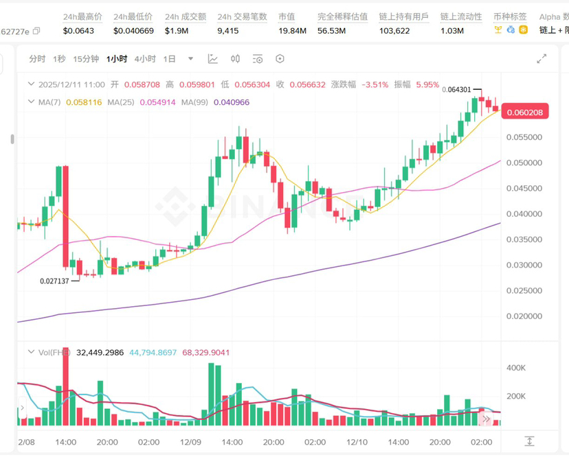 If someone has been watching the market these past few days, they might notice something quite interesting: no matter how much the market fluctuates, the sentiment around $FHE hasn't really dissipated. The price is hovering around 0.06U, and if you calculate from December 7th until now, it has overall increased by about 247% — in just a few days, it has suddenly surged from an inconspicuous small stock to the top of the mainstream exchange's gainers list, even squeezing into the top ranks of contract trading on Binance, only falling behind SUI for a while. It's hard to say this is a coincidence because starting from that day with a +55% single-day increase, the volume has clearly ramped up, indicating that the number of participants is continuously growing, rather than it being a one-man show by the market maker.
