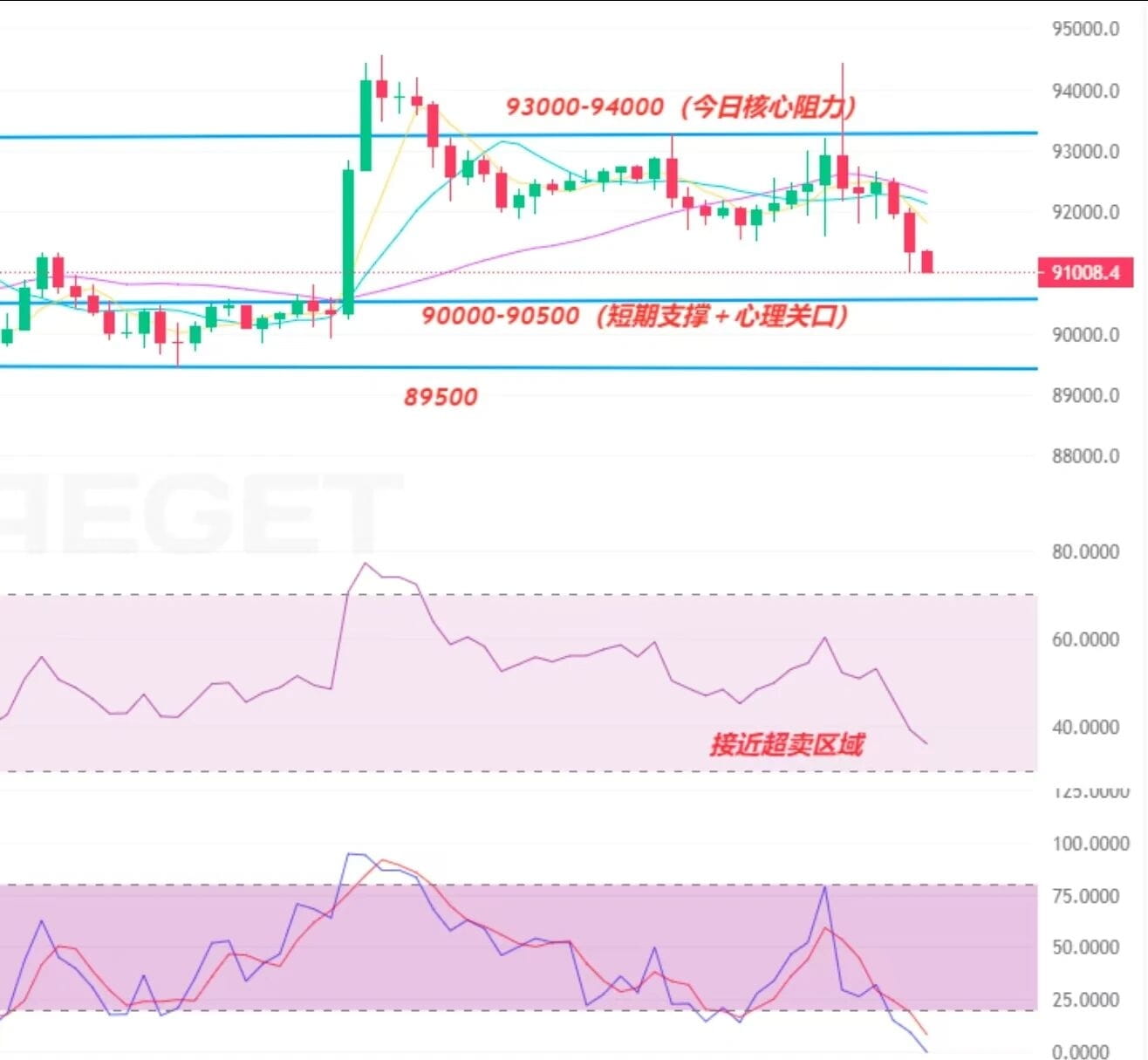 Bearish opportunity: if the price rebounds to the $93,000–$93,500 range and encounters resistance, a small position can be attempted, targeting $91,500–$91,000.