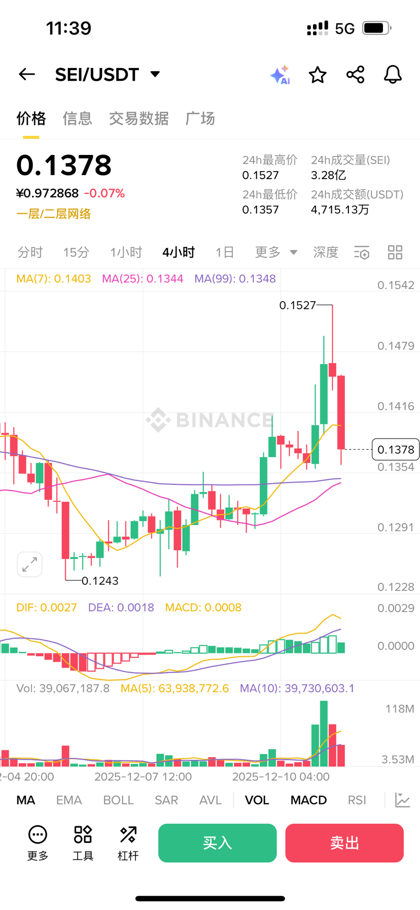 So, if you are still in the market, perhaps it’s time to change your thinking: stop expecting a straight line upward 'myth' and instead accept the reality of fluctuations, grasp the rhythm of the waves. Be not greedy during rises, not panic during pullbacks; decisively reduce positions when prices rise, and cautiously buy back during sharp drops — this may be a more practical survival strategy right now.$SEI