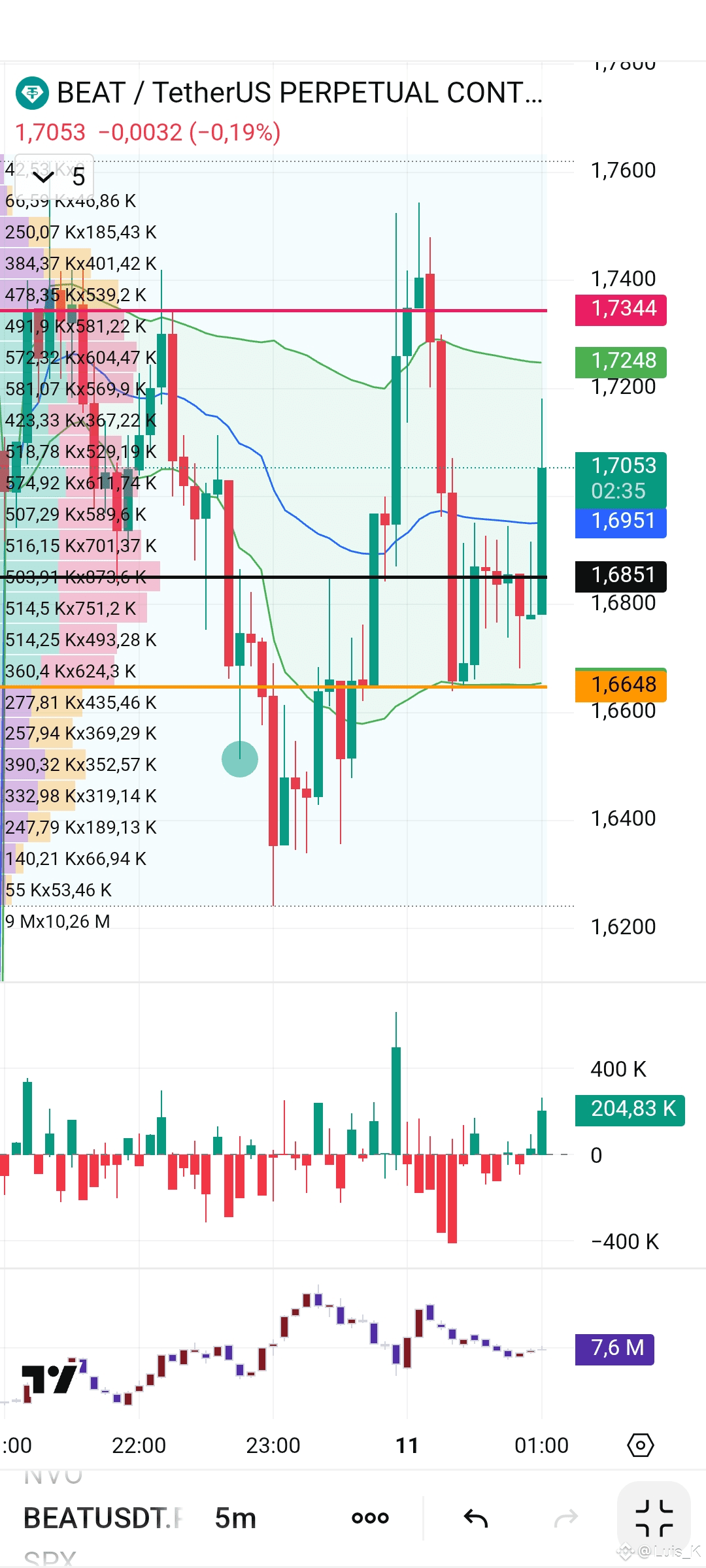 • Señal técnica de validación alcista: cierre de vela 5m por encima de 1.725 con aumento de OI y Delta consistentemente positivo. Señal de invalidación: cierre 5m por debajo de 1.6851 con expansión de volumen vendedor y aumento de OI.