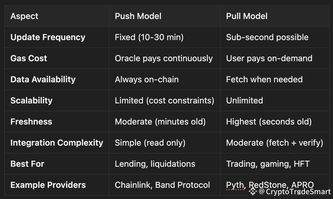 You're building a DeFi lending protocol. The critical question: How should the oracle update ETH price? Automatically every 10 minutes regardless of usage (Push)? Or only update when users actually need it (Pull)? This decision directly impacts gas costs, data freshness, and protocol security. APRO supports both models - but when should you use which?