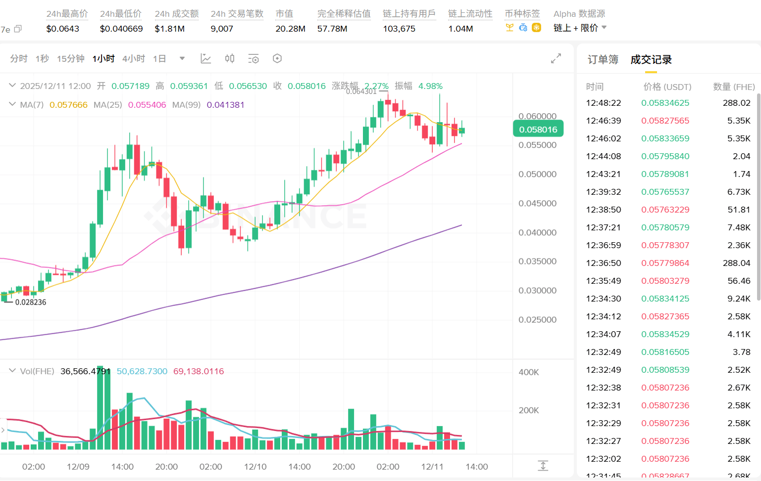 To be honest, this market trend makes me feel quite complicated. On one hand, watching the upward trend makes me excited, and the market sentiment is very strong; on the other hand, I am also tracking its technical progress because I always believe that is the key factor determining how far it can go. For me, $FHE is not just about rising quickly, but the technological value and ecological potential behind it are truly interesting. In the short term, I will continue to observe trading opportunities, and in the long term, I will focus more on whether its ecosystem can continue to expand.