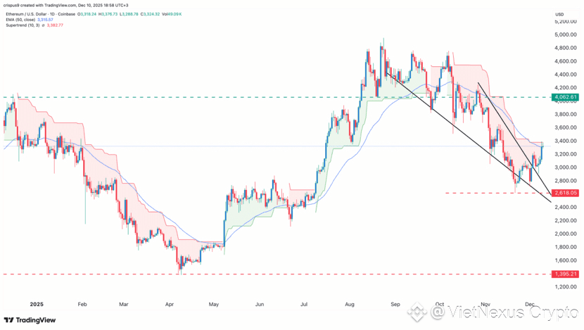 Ethereum price has also moved above the 50-day Exponential Moving Average, and is now attempting to move above the Supertrend indicator, a move that would be highly bullish for the token.