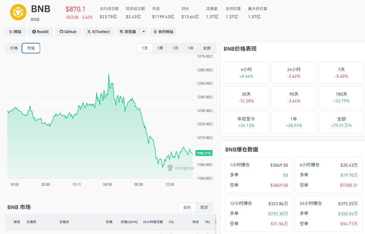 Currently, the BNB price is struggling around 870, with resistance above like a mountain and support below like paper.