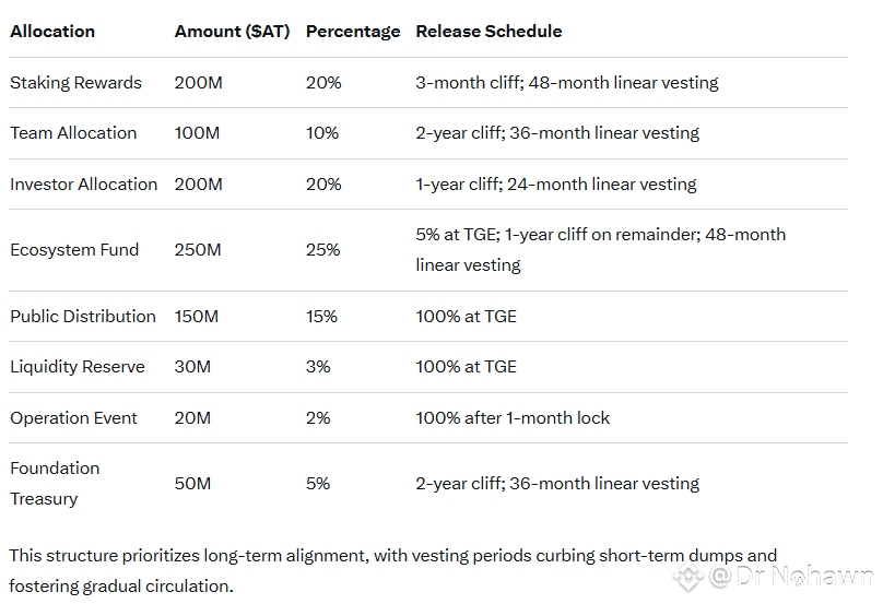 AT operates as a dual-chain asset, deployed as a BEP-20 on BNB Smart Chain (0x9be61A38725b265BC3eb7Bfdf17AfDFc9d26C130) and an ERC-20 on Ethereum (0x0581CCdf2d9BcA21baEfF8b32b2551fd49CF70aa). Its TGE went live at 10:00 UTC on October 24, 2025, with instant CoinMarketCap listing for maximum transparency.
