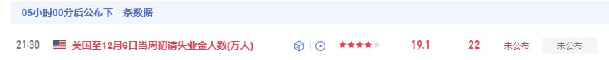 21:30, the number of initial jobless claims in the U.S. for the week, which seems like just a routine weekly data point, but in the current market environment, every slight fluctuation could trigger a market reaction. The expectation is 191,000, the previous value was 220,000, and currently the phrase 'not yet published' signifies a brief calm before the storm.
