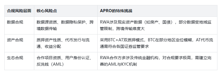 The compliance risks for oracles mainly concentrate on three core levels. Due to its layout in the RWA track, APRO faces more prominent challenges, as detailed below: