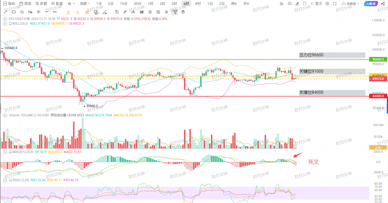 The Bank of Japan suddenly raises the interest rate scythe, causing a stir in the global market, with BTC experiencing a terrifying rollercoaster ride; a death cross is suddenly appearing on the four-hour candlestick chart, the critical support at $91000 has been breached, and the life-and-death line at $84000 is in jeopardy! Is this operation a precursor to a crash or a trap to lure shorts? Let's peel back the fog and uncover the truth from the perspective of capital and technical analysis!