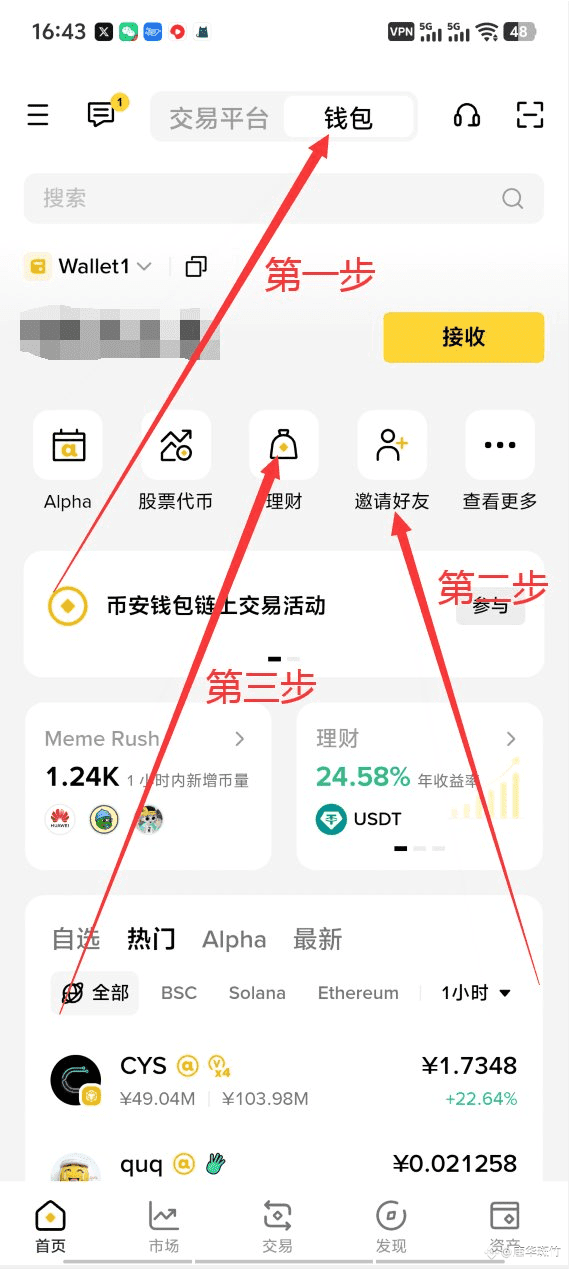 The participation method is very simple: switch the Binance APP to 'Wallet' for operation, using the mobile APP is the most convenient.