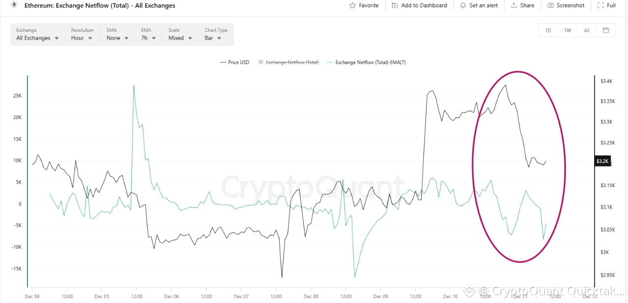 In the circled area (around December 9-12), we see a sharply negative netflow, with outflows significantly exceeding inflows.